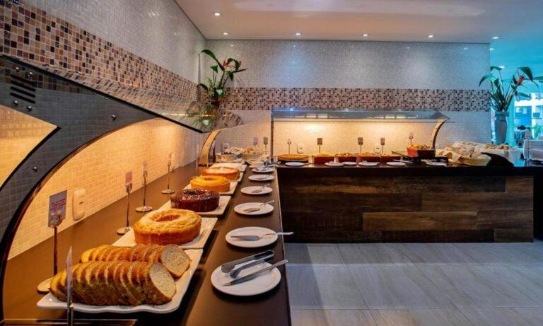 O café da manhã é servido em nosso restaurante principal, com dois ambientes, preparado com ótimas variedades de pães, bolos, salgados, frutas, cereais, iogurtes, sucos e muito mais. Prepare-se para se surpreender!